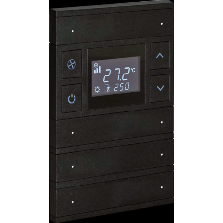Description: 4, 6 ou 8 boutons poussoirsSurveillance du climat via un écran LCDThermostat avec régulateur PICapteur de température interne ( C / F)Vitesse du ventilateur réglable (1, 2, 3, automatique)Plusieurs modes de fonctionnement (Confort, Veille, Économique, Protection)Possibilité de faire fonctionner différentes unités HVAC, y compris VRF-VRVBoutons programmables indépendants pour différentes fonctions: Commutateur Variateur Commande de volet roulant / store Attribution de valeur et de priorité