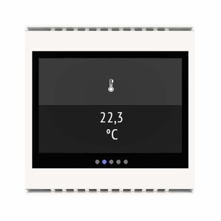 Description: Ecran tactile couleur 55x551 affichage des valeurs mesurées actuelles1 affichage des données de bus (4 espaces universels)1 contrle de la température3 opération d'entranement (ombrage, fenêtre)3 commutation ou atténuation de la lumière1 contrle de la lumière RVB1 réglage de la température de couleur de la lumière1 contrle HCL (Human Centric Lighting)1 scènesminuterie hebdomadaire avec 8 périodes2 page d'informationÉconomiseur d'écran4 entrées pour contacts binaires ou capteur de température T-NTCP