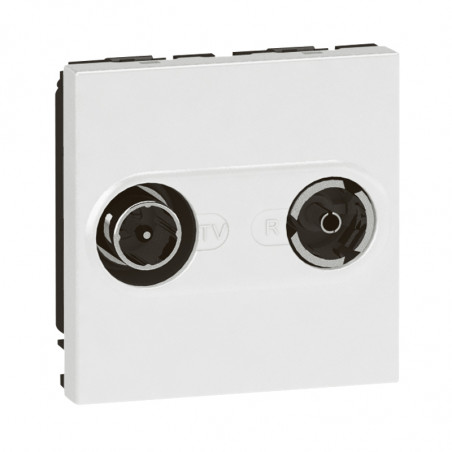 Description: Mosaic prise TVFM pour reseau cable - 2 modules - blanc - affaiblissement 15 dB - avec borne de connexion autom pour le raccordement du cable coaxial