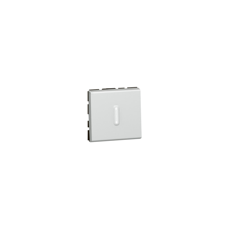 Description: Mosaic interrupteur deux directions à voyant à led- 10 A - 250 V - 2 modules - blanc - enjoliveur finition alu - connexion rapide sans outil par bornes auto