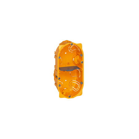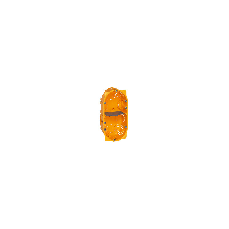 Description: Batibox boite d'encastrement multipostes entraxe 71 mm pour cloisons creuses - 2 postes - 4 modules vert ou hor - prof 40 mm