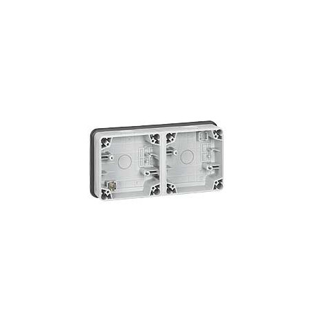 Description: PLEXO 66 composable boitier 2 postes horizontaux - gris - IP 66 - IK 08 - livre avec bouchon d'etancheite - livre avec presse-etoupe M 20 ISO