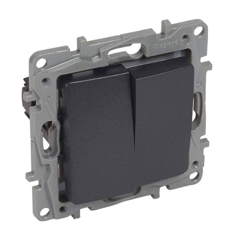 Marque: LegrandRéférence: 397656EAN: 3414970304049Emballage: 8/96/480Description: Niloe DIY inter 2 directions double 10AX 250V anthracite a griffes