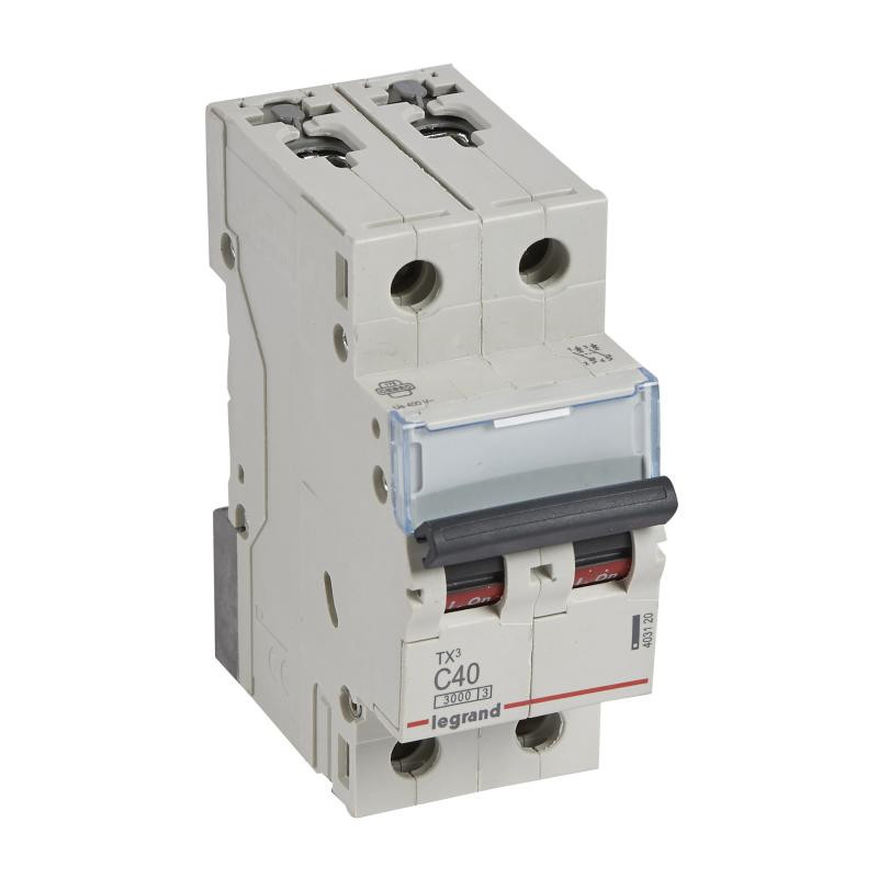 Marque: LegrandRéférence: 403120EAN: 3414970385871Emballage: AQ2/30/1440Description: Disjoncteur TX3 3000A 2P C40 230400V - 2 modules