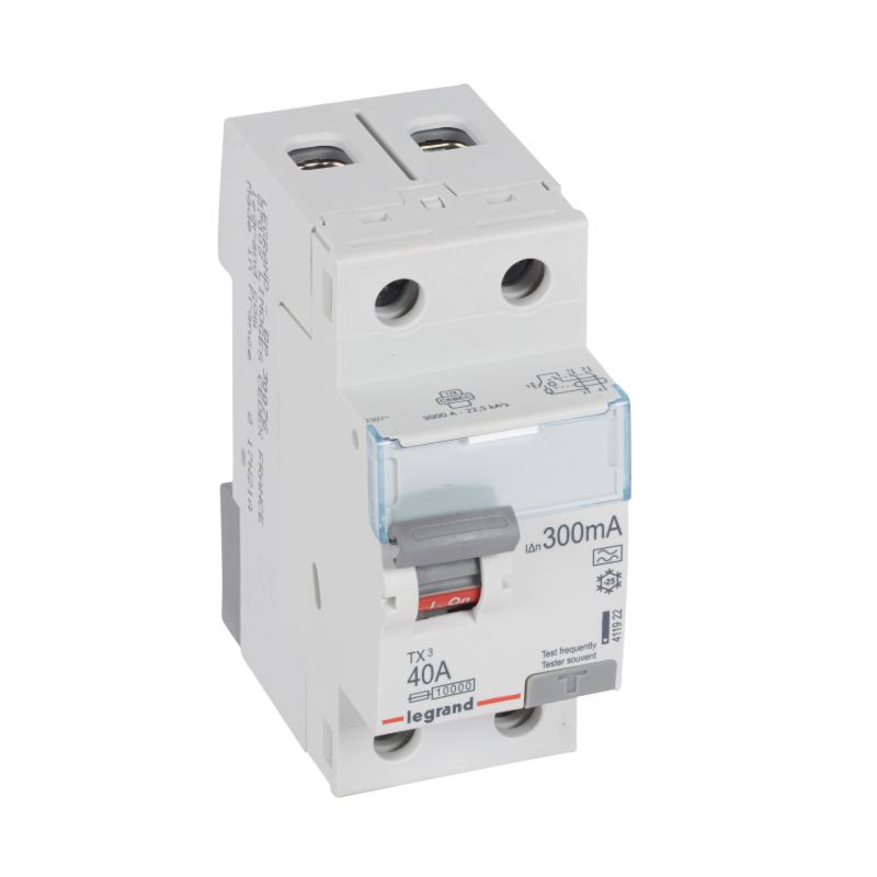 Description: Interrupteur differentiel TX3 2P 300mA 40A Type A - 2 modules - convient pour des installations domestiques