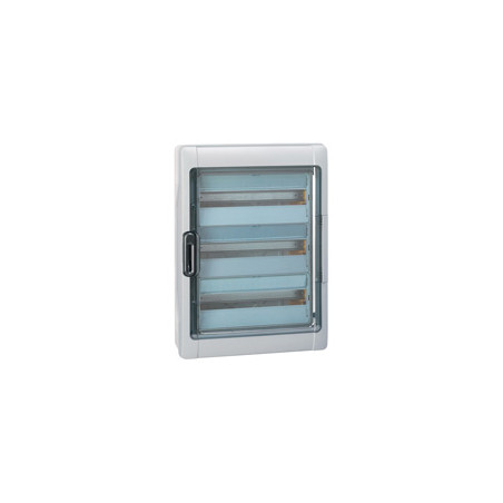 Description: Plexo3 Coffret de distribution etanches 18 modules par rangee - 3 rangees - 3 obuturateurs de 5 modules - IP65 - IK09