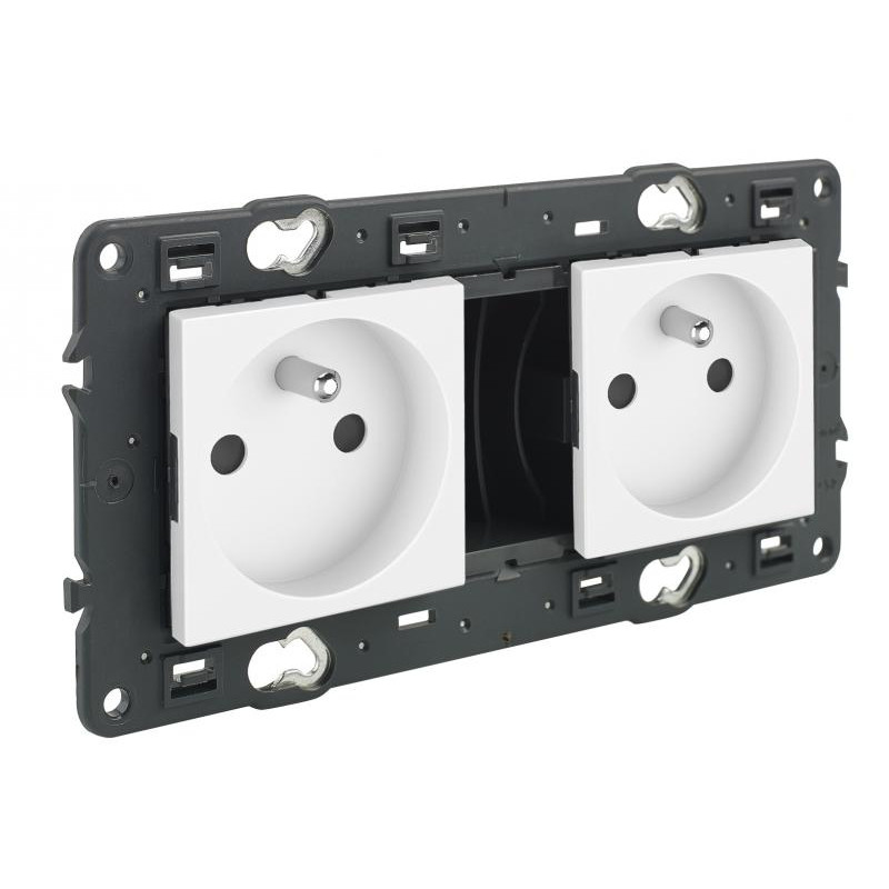 Marque: Legrand Référence: 741522 EAN: 3414971275898 Emballage: 1/10/50/900 Description: VALENA NEXT prise 2x2PT precablee appareil complet blanc a vis