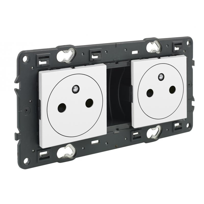 Description: Valena Next prise 2x2PT precablee affleurante appareil complet blanc a vis