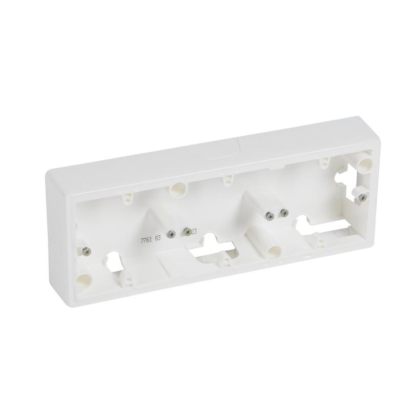 Marque: LegrandRéférence: 776183EAN: 3245067761830Emballage: 1/10/100Description: Val cadre saillie pour 3 mecanismes - blanc