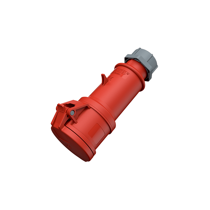 COUPLEUR CEE PROTOP 32A 4P 6H 400V IP44.BORNES Á VIS.PRESSE-ÉTOUPE AVEC JOINT.ARRÊT DE TRACTION AVEC PROTECTION CONTRE PLIAGE.ENVELOPPE ROUGE FILETÉE AVEC GLISSIÈRE DE SÉCURITÉ.