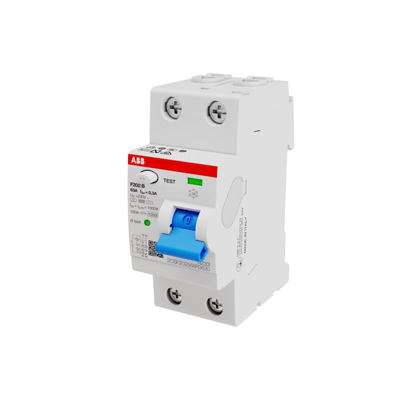 Marque: ABBRéférence: 2CSF202568R3630EAN: 8012542341857Emballage: AQ2Description: F202B-63/0,3 Interrupteur différentiel 2P, 63A,300mA type B