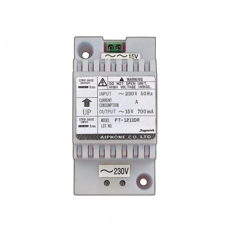 Marque: AiphoneRéférence: AIPPT1211DRDescription: TRANSFO 15V CA POUR SERIE DA/DBEmballage: 1