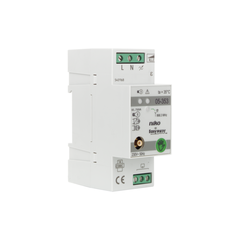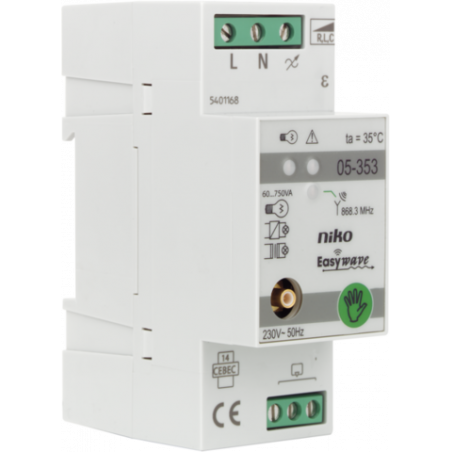 Marque: NikoRéférence: 05-353EAN: 5413736233546Emballage: 1/[1]Description: Variateur sans fil pour montage sur rail DIN