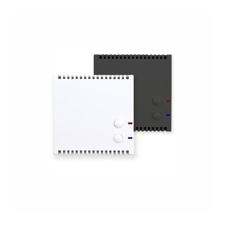 Description: Temperatuur-en luchtvochtigheidssensor2 binaire I/O kanalen. Max. kabellengte: 2mElk I/O kanaal is instelbaar als ingang of als LED uitgang (3Vdc/4mA)Druktoetsfunctie met kort, lang, 2x drukken en 2 druktoetsen samen indrukkenRode en blauwe status LED (voor weergave koel-en verwarmingsmode en verschil tussen de gemeten en gevraagde C)Helderheid instelbaar en in functie van omgevingslicht1 PI controller voor verwarming en koeling Met 3 regimes, C instelbaar via ETS en via de bus1 PI controller voor verwarmin