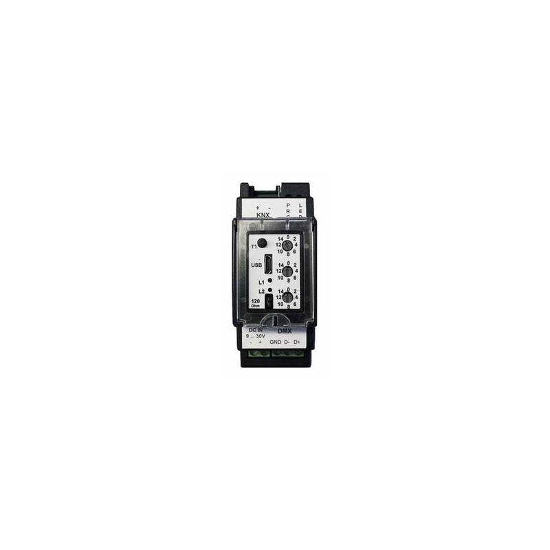 Description: Interface unidirectionnelle de KNX à DMXAdresse de groupe KNX 1 bit, 4 bits et 1 octet par canal DMX512 canaux DMX avec 8 scènesConnexion USB pour la configurationOutil de configuration DMXAlimentation supplémentaire 24VDC requiseNouveau pilote USBNouveau logicielRail DIN 2 modules