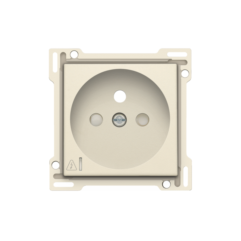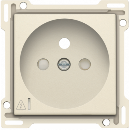 Description: Set de finition pour prise de courant avec protection contre les surtensions, broche de terre et obturateurs de protection, profondeur d'encastrement de 28,5 mm, y compris module contre les surtensions avec LED rouge, cream