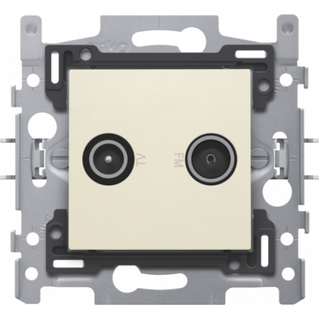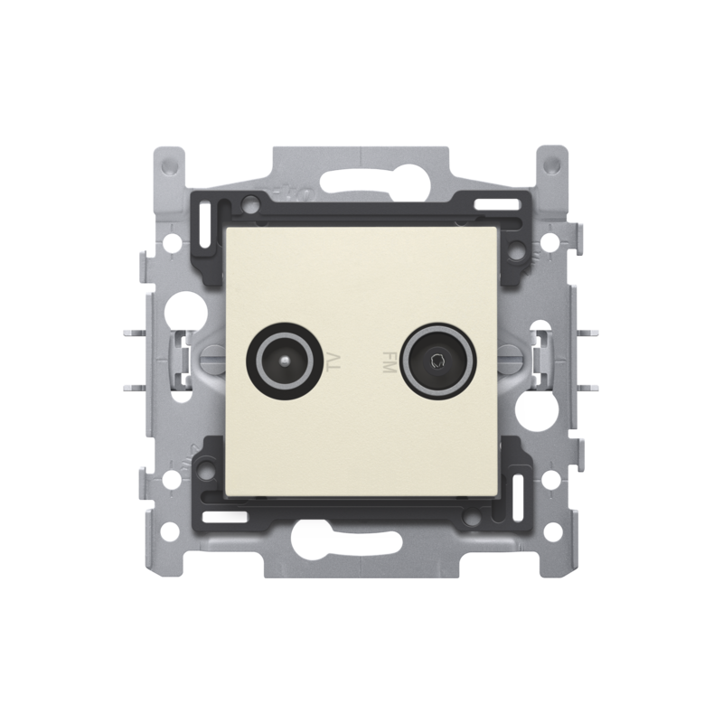 2 connexions coaxiales mâles simples pour TV et FM, socle et set de finition, couleur cream