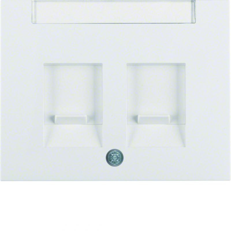 Description: Enjoliveur avec 2 volets antipoussière et porte-étiquette K.1 blanc polaire, brillant