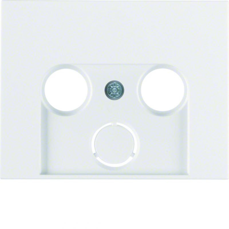 Marque: Berker by HagerRéférence: 12017019EAN: 4011334387411Emballage: 10/10Description: Enjoliveur pour prise coaxiale 2 et 3 trous K.1 blanc polaire, brillant