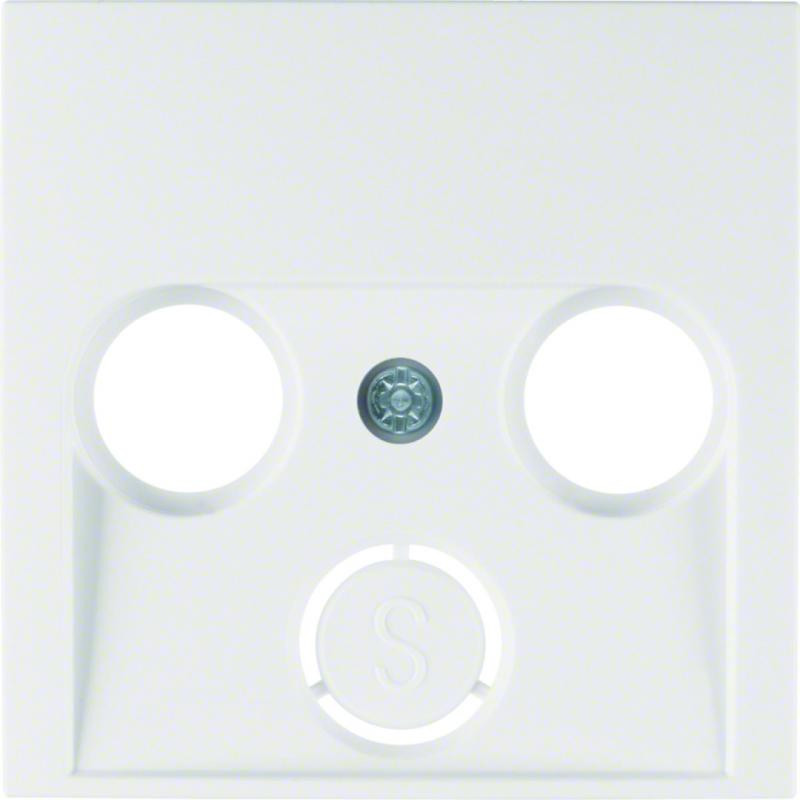 Marque: Berker by HagerRéférence: 12038989EAN: 4011334279167Emballage: 10/10Description: Enjoliveur pour prise coaxiale 2 et 3 trous S.1 blanc polaire, brillant