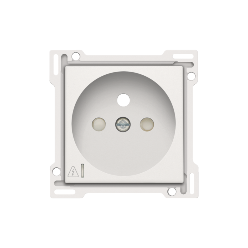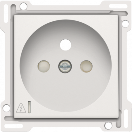 Description: Set de finition pour prise de courant avec protection contre les surtensions, broche de terre et obturateurs de protection, profondeur d'encastrement de 28,5 mm, y compris module contre les surtensions avec LED rouge, white