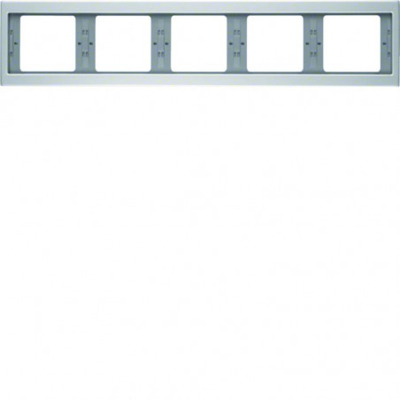 Marque: Berker by HagerRéférence: 13937003EAN: 4011334378679Emballage: 2/2Description: Plaque de recouvrement 5 postes pour montage horizontal K.5 alu