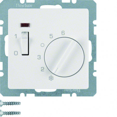 Marque: Berker by HagerRéférence: 20306089EAN: 4011334316121Emballage: 1Description: Thermostat dambiance, contact NF, Q.1/Q.3 blanc polaire, velours