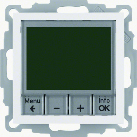 Marque: Berker by HagerRéférence: 20441909EAN: 4011334354680Emballage: 1Description: Thermostat programmable, contact NO, S.1 blanc polaire, mat