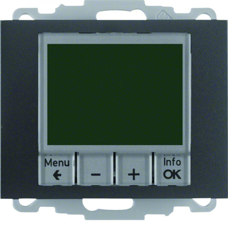 Marque: Berker by HagerRéférence: 20447106EAN: 4011334354758Emballage: 1Description: Thermostat programmable, contact NO, K.1 anthracite, mat