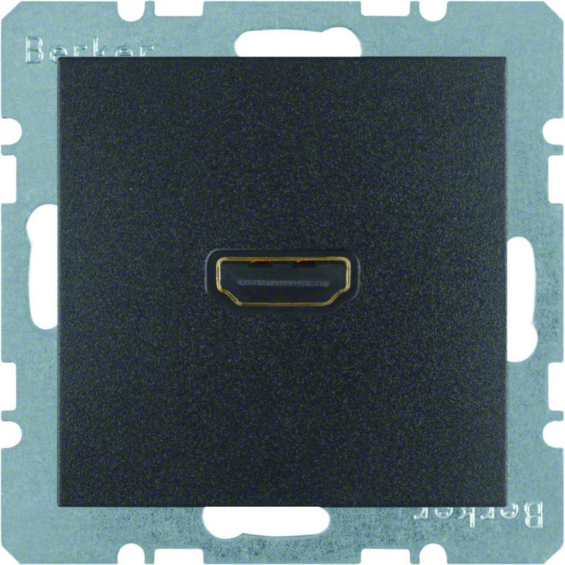 Description: Prise HDMI avec fiche de connexion 90 S.1 anthracite, mat