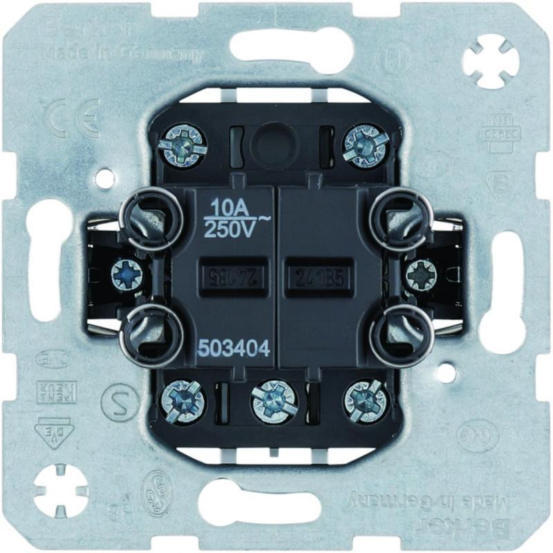 Marque: Berker by Hager Référence: 503404 EAN: 4011334255994 Emballage: 10/10 Description: Poussoir de groupe double Berker, 4 NO, borne dentrée commune