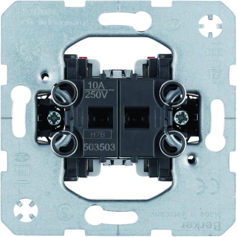 Marque: Berker by HagerRéférence: 503503EAN: 4011334030478Emballage: 10/10Description: Poussoir double Berker, 2 NO, bornes dentrée séparées