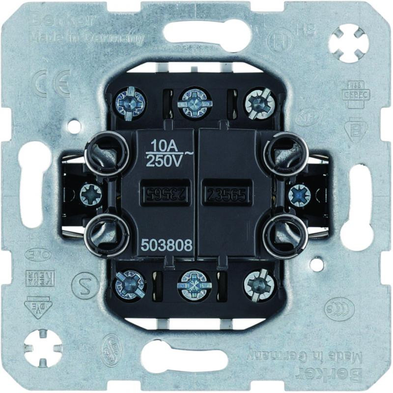Marque: Berker by HagerRéférence: 503808EAN: 4011334230540Emballage: 10/10Description: Poussoir double Berker, 2 x va-et-vient, bornes dentrée séparées