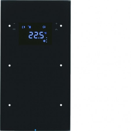 Marque: Berker by HagerRéférence: 75642055EAN: 4011334381402Emballage: 1Description: Touch Sensor 2 voies avec thermostat dambiance R.3 verre, noir