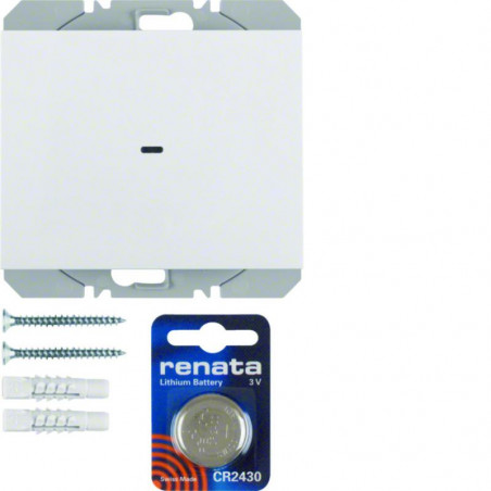 Description: Bouton-poussoir simple à pile radio Quicklink Knx K.1/K.5 blanc polaire brillant
