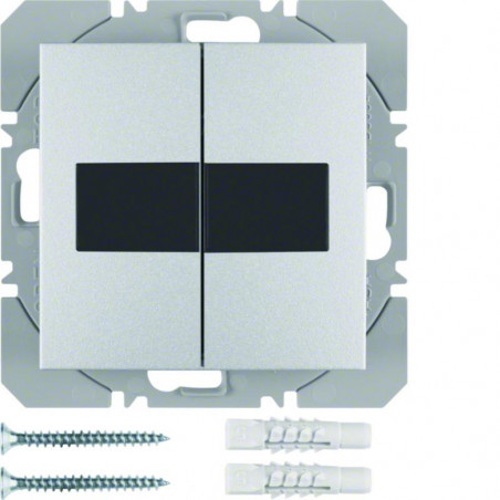Marque: Berker by HagerRéférence: 85656183EAN: 4011334369653Emballage: 1Description: Bouton-poussoir double solaire radio Quicklink Knx S.1 aluminium mat