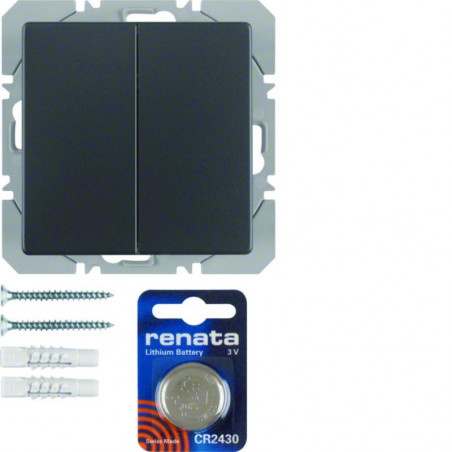 Description: Bouton-poussoir double à pile radio Quicklink Knx Q.1/Q.3 anthracite velours