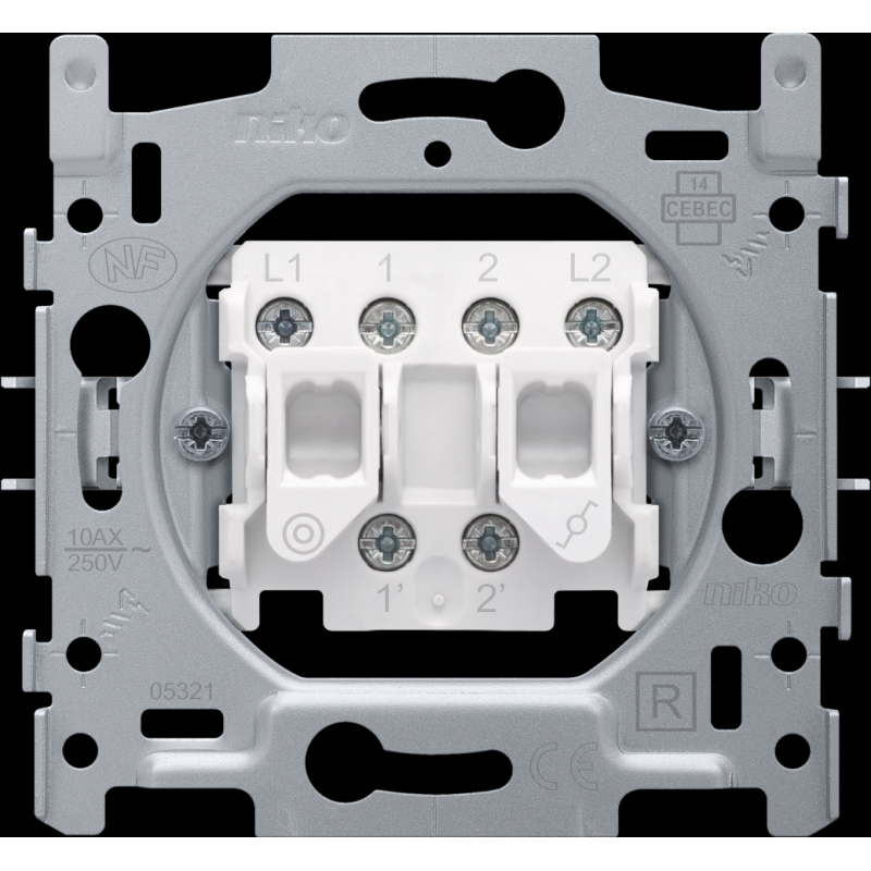 SOCLE INTERRUPTEUR VA-ET-VIENT 10A ET BOUTON-POUSSOIR NO/NF VIS
