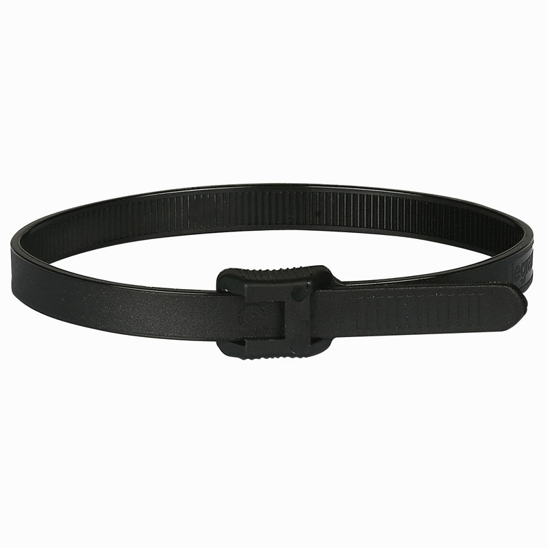 Description: Collier Col 6 a denture interieure - longueur 194 mm - largeur 76 mm - diametre de serrage maxi 42 mm - polyamide 66 noir - protege ultraviolets UV