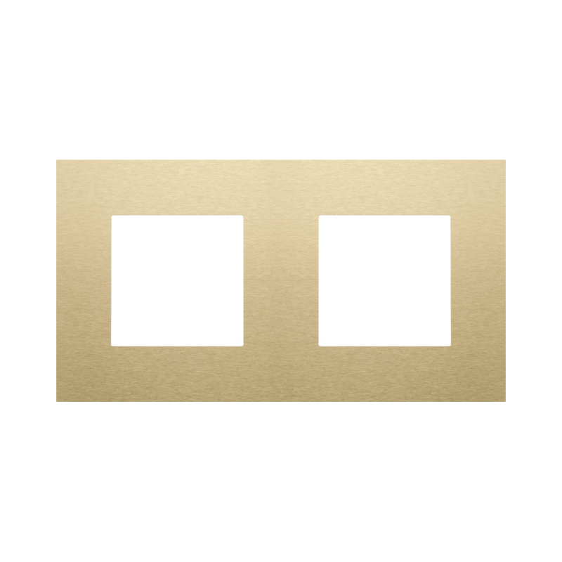 Description: PLAQUE DE RECOUVREMENT DOUBLE AVEC UN ENTRAXE DE 71 MM, COULEUR NIKO PURE ALU GOLD BRUSHED