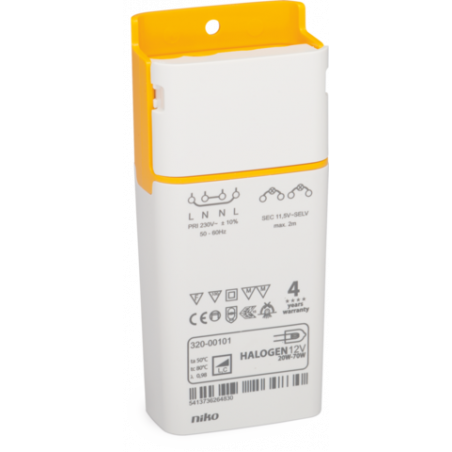 Transformateur électronique de 70 W avec borniers du côté primaire (2x) et du côté secondaire (2x)
