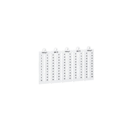 Description: Plaques de reperes pour blocs de jonction VIKING 3 au pas de 5 mm - chiffres 1 a 10 10 fois - lecture horizontale