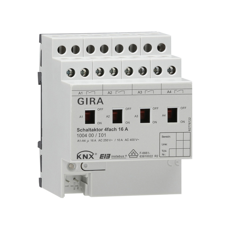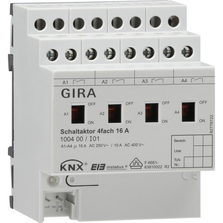 Marque: GIRARéférence: 100400Description:ACT.COMMU. 4X 16 A COMM.MAN. KNX RAIL DIN Conditionnement: 1/C62