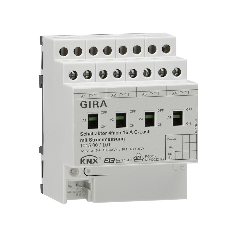 Marque: GIRARéférence: 104500Description:ACT.COMMU. 4X 16 A COMM.MAN. + CHARGE C KNX RAIL DIN Conditionnement: 1/C62