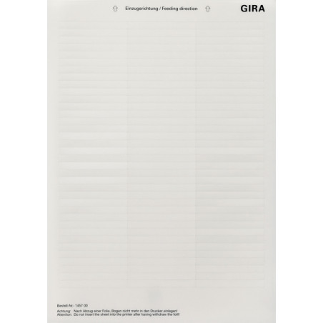 Marque: GIRARéférence: 145700Description:FEUILLES D'INSCRIPTION 62,8 X 6,8 MM ACCESSOIRESConditionnement: 1/C62/5/525 g/310 mm