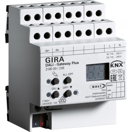 Marque: GIRARéférence: 218000Description:PASSERELLE DALI PLUS KNX RAIL DIN Conditionnement: 1/C62