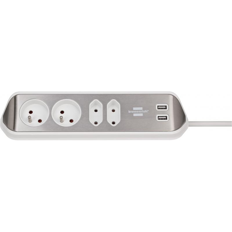 PROLONGATEUR MULTIPRISE BRENNENSTUHL®ESTILO AVEC FONCTION DE CHARGE USB 4 VOIES 2X CONTACT DE PROTECTION & 2X EURO ARGENT/BLANC *BE*
