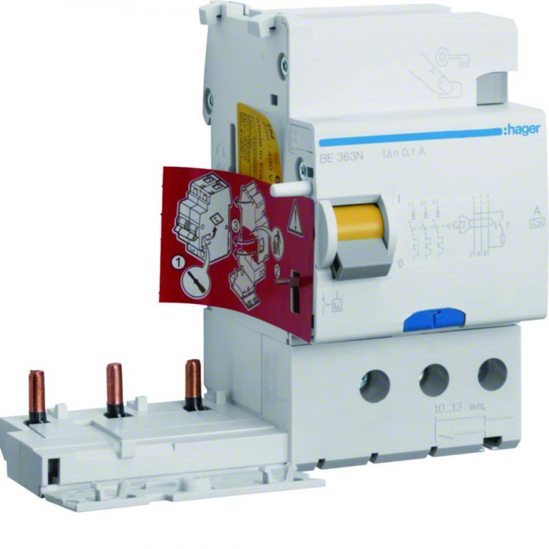 Marque: HagerRéférence: BE363NEAN: 3250611353010Emballage: 1Description: Bloc différentiel 3P 63A 100mA type A