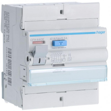 Marque: HagerRéférence: CFH440EEAN: 3250611614319Emballage: 1Description: Interrupteur différentiel 4P 40A 300mA type HI 4MOD.