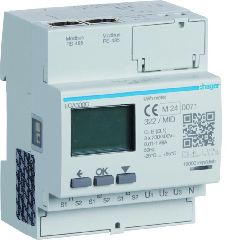 Marque: HagerRéférence: ECA300CEAN: 3250612231263Emballage: 1Description: Compteur triphasé 3PN via TI 1-5A 4M AGARDIO MID